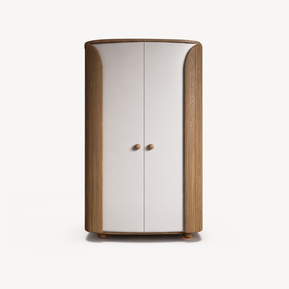 Wardrobe body made of plywood, doors made of MDF, and legs made of beech wood.